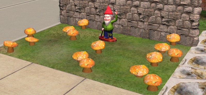 The way the harvestable mushrooms work is you get your sim to go to them and harvest one or all for either food or money. If you are harvesting for food, then it will go into your sim's fridge and be saved as their groceries, so this is easier for you instead of having to call and order groceries when you run out. The harvestable mushrooms are found under decorative/plants and cost 5 simoleons. The harvestable ones will stay in your garden even after you harvest them, until they die from not being watered and you dispose of them, or remove them using buy mode hand tool. However, after you harvest them, you will only be able to water them, you won't be able to harvest them again. The harvestable mushrooms are not recolorable. The exact same mesh, and textures were used for the harvestable ones as was used for the build mode flower ones. Echo's harvest basket from the link above is Required! in order for the mushrooms to harvest properly!