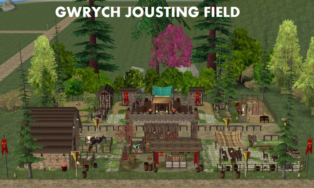 There are several RECOMMENDED objects that will bring your Gwrych Jousting List to life! These objects are NOT needed to download my lot(s). These are merely suggested objects that I personally cannot live without in my personal version of the Gwrych Jousting Field. These are objects that could not be included in the lot either due to size limitations or to honor the request of the creators. Besides, the types of "horses" and "swords" you include (there are several options to choose from) should be up to the downloader. I left specific spots to place the various items on the lot.