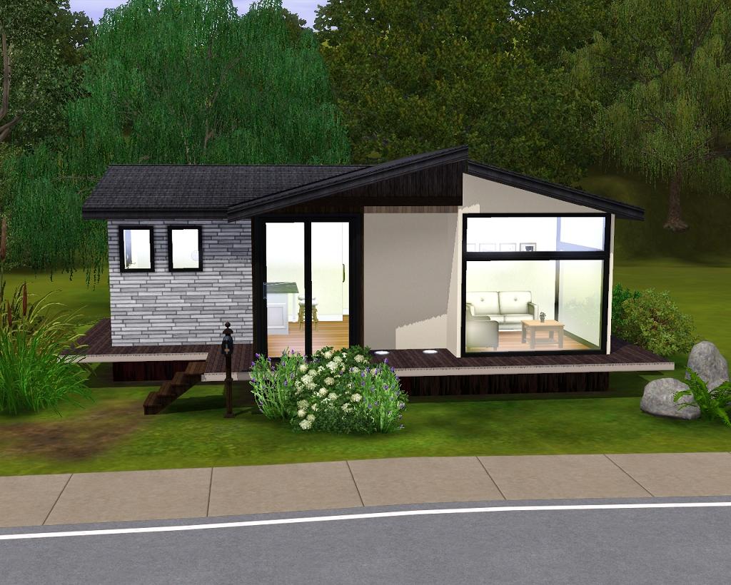 At last, I found enough currage to make my first upload. When I saw Waterfall Retreat by NaMo Design I thought it would be nice to have starter house in similar style. It's a open plan studio with kitchen annex, living area, bed corner and small bathroom. I think you can find there everything what Sim needs in the beginning of new life.