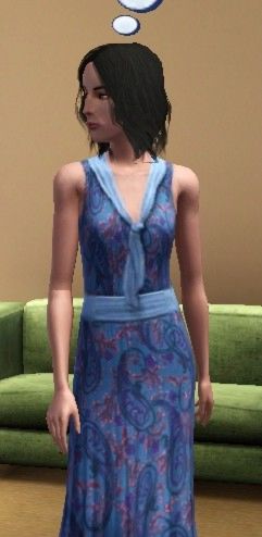 The Sim in the blue dress is Alexis Battenberg, one of my own characters.