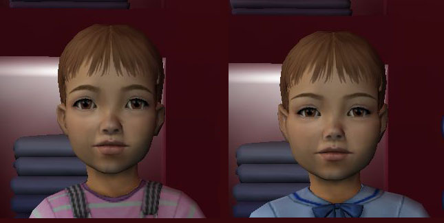 Up above are shots that compare each age and gender to the original un-modded face, and a few shots in the four different skintones.