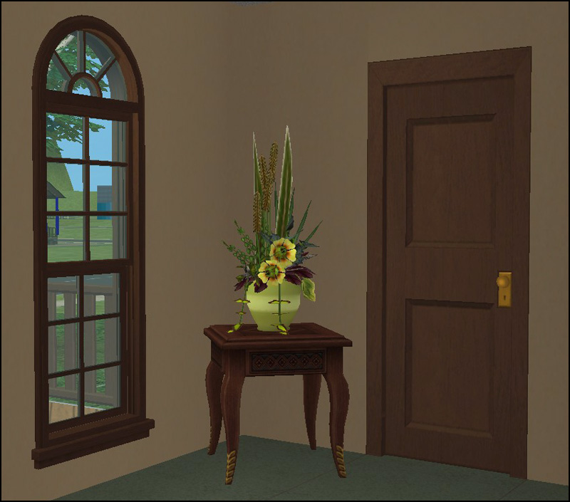 In all likelihood, these will be the only interior doors that I will recolor, other than the Oaktowne Classic door. I like that one's extra-tall height and, in conjunction with CC sidelight windows, I use it on exteriors as often as interiors. However, if you find yourself with a burning need for a Maxis interior door other than those in my colors, feel free to shoot me a request. Rest assured that I have/will be assaulting all of the wooden exterior doors that are included in the EPs/SPs that I have.