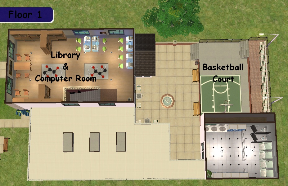 A paradise for your teen sims to go after school. Basketball Court, Swimming Pool and even a Library to complete their homework. Always CC- free guys.