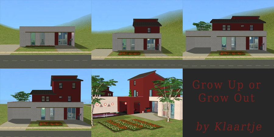 This set is inspired by an earlier set created by karen lorraine. The idea is that the five houses each are an expansion of the previous one, with as little structural changes as possible. Likewise, most of the furniture is the same, as if the sims living there are expanding on what they have rather than moving somewhere else and buying new stuff everytime. I'm a big fan of changing around the furniture of my own house every six months or so, so I did play around with the furniture arrangements in these lots.