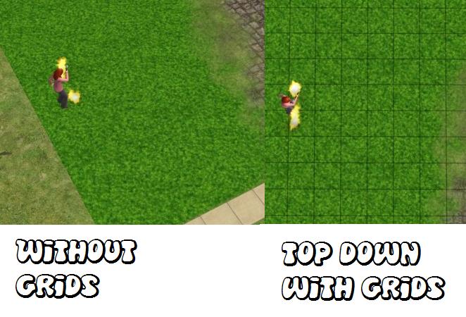 I have included the grids in both pictures, to show you what the grass looks like with the grids in build/buy mode. Of course I've got pictures without the grids.