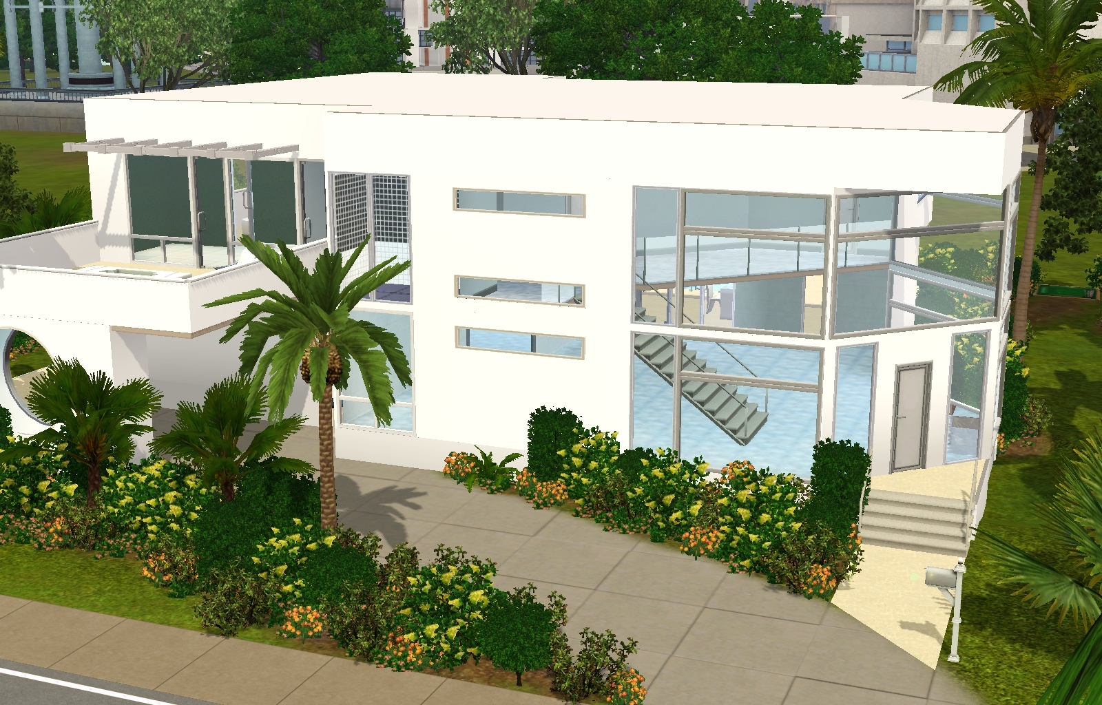 Hey all! I think I'm into the word double when I'm uploading houses, ha ha! I have reasons... This house has four bedrooms and three bathrooms. I had a lot of fun building this house. Well I mean I do with all the houses I build, but I liked the entrance and the driveway- it's not straight!