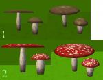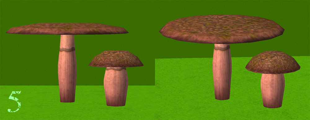 I recolored the undersides with the correct texture that came with my mushroom graphics, but as you can see, the mesh has lines dissecting across the underside. Oh, well. At least we can all live more peacefully knowing these toadstools have air vents on their bottoms.