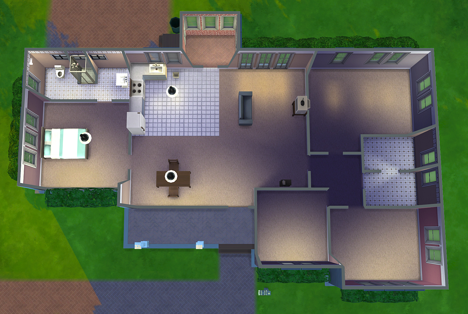 getcha ranch-style family-friendly starter with 4 bedrooms, 2 baths, and room for pretty much whatever you want. furnished for two, but has the potential to comfortably sleep the max number of sims with no effort at all. you could easily turn 2 bathrooms into 3, there's still room left on the lot to expand if you need more space, and obviously vertical is always an option.