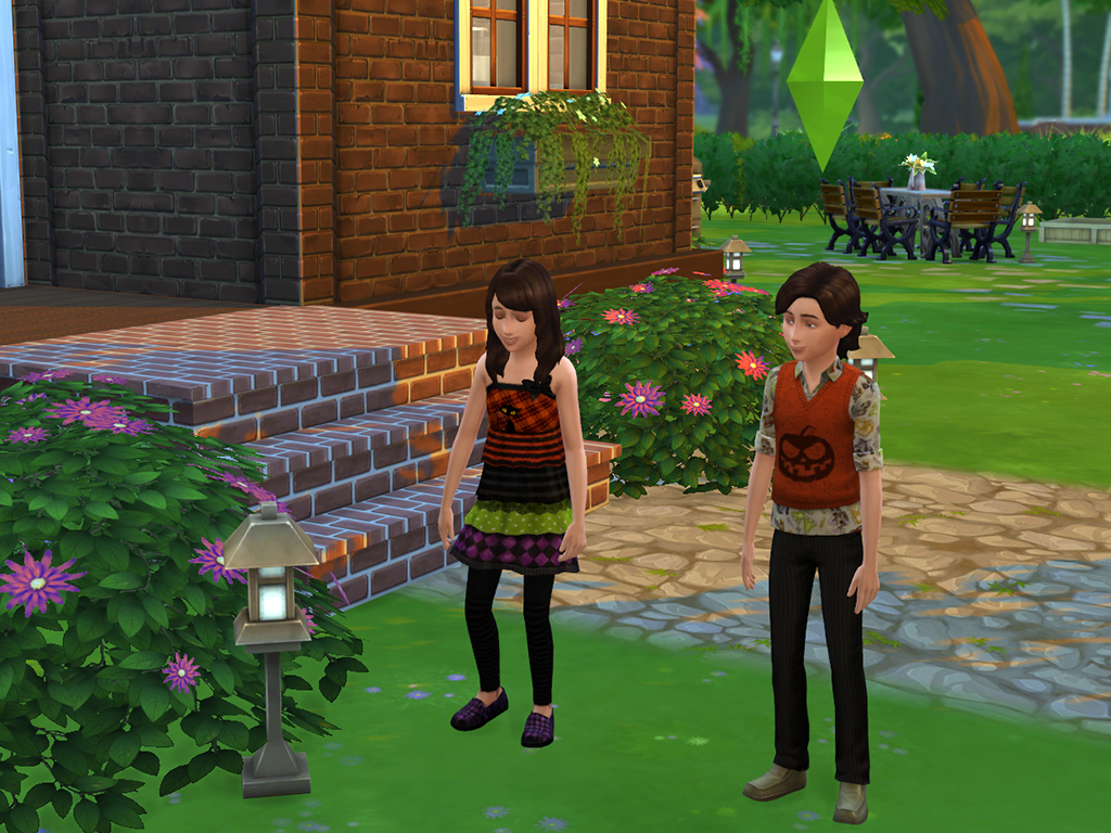 Ready for Halloween? It is a time for great party. For the girls I've made this outfit in two variants in specific Halloween colours - orange, green, violet and of course black. Shoes are unisex, which means they appear in both gender clothes category. The top with pumpkin is also comes with 2 colour variants. I made them for boys, but the girls can wear it too like black stripes pants.