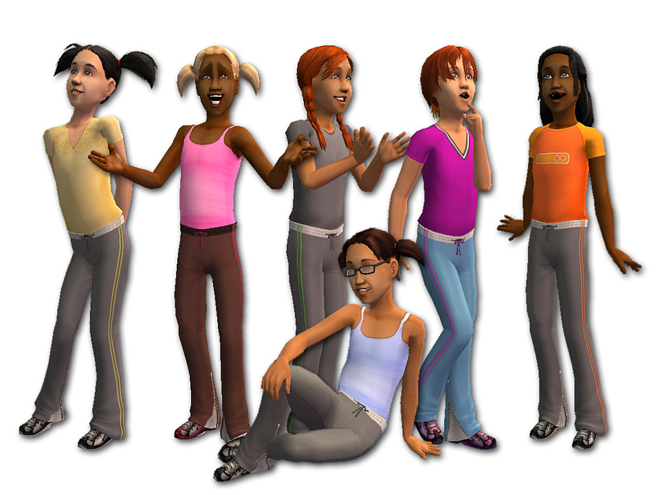 These pants use a new mesh, which is included. It has a working fat morph (see the blond girl in the lilac teddy t-shirt and grey pants, above). No EPs or SPs are required.