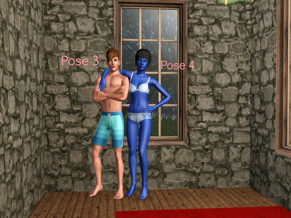 By the first pose, a female pose like you can see, looks the sim scared or sad, so you can use this pose in a story, when a sim is scared.