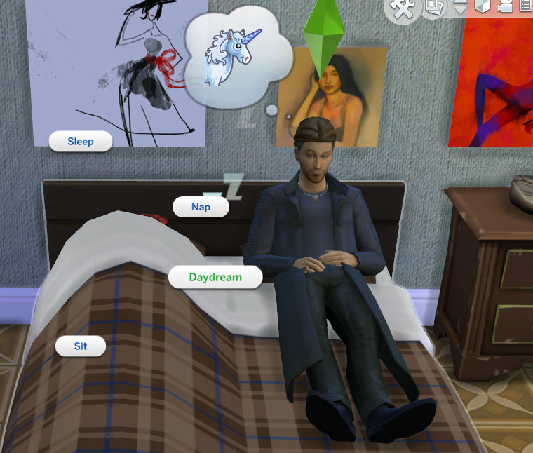 Also the "Daydream" interaction is enabled on beds, so the sim can daydream/relax on beds for 60-90 minutes and will get some comfort back from the bed (not that I actually know how to watch this Comfort level, I don't see it on the UI anywhere). This daydreaming isn't useful for anything, I simply enabled it here because it exists but is apparently disabled for some reason.