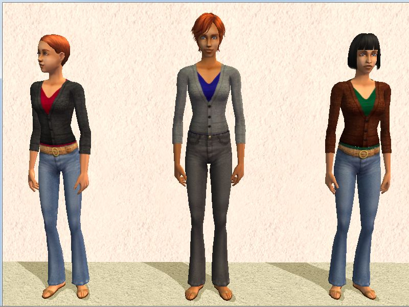 The adult tops will not appear properly untuckable when used with the heeled, low-rise YA/AF pants from H&M Stuff, or with recolors of those pants. This is due to a glitch in the Maxis mesh (afbottomchiqjeans); fanseelamb made a fix for it.