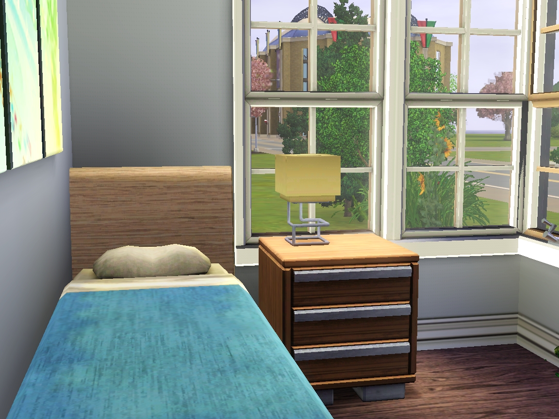 I decided to make a cheaper home, that still gives you all of the basic amenities and plenty of space for your single sims or sims who are just beginning to start a family! This lovely home features 2 bedrooms, 1 bathroom and a kitchen, dining, and living room combo. There's also a covered garage for your sims to park those pretty vehicles under