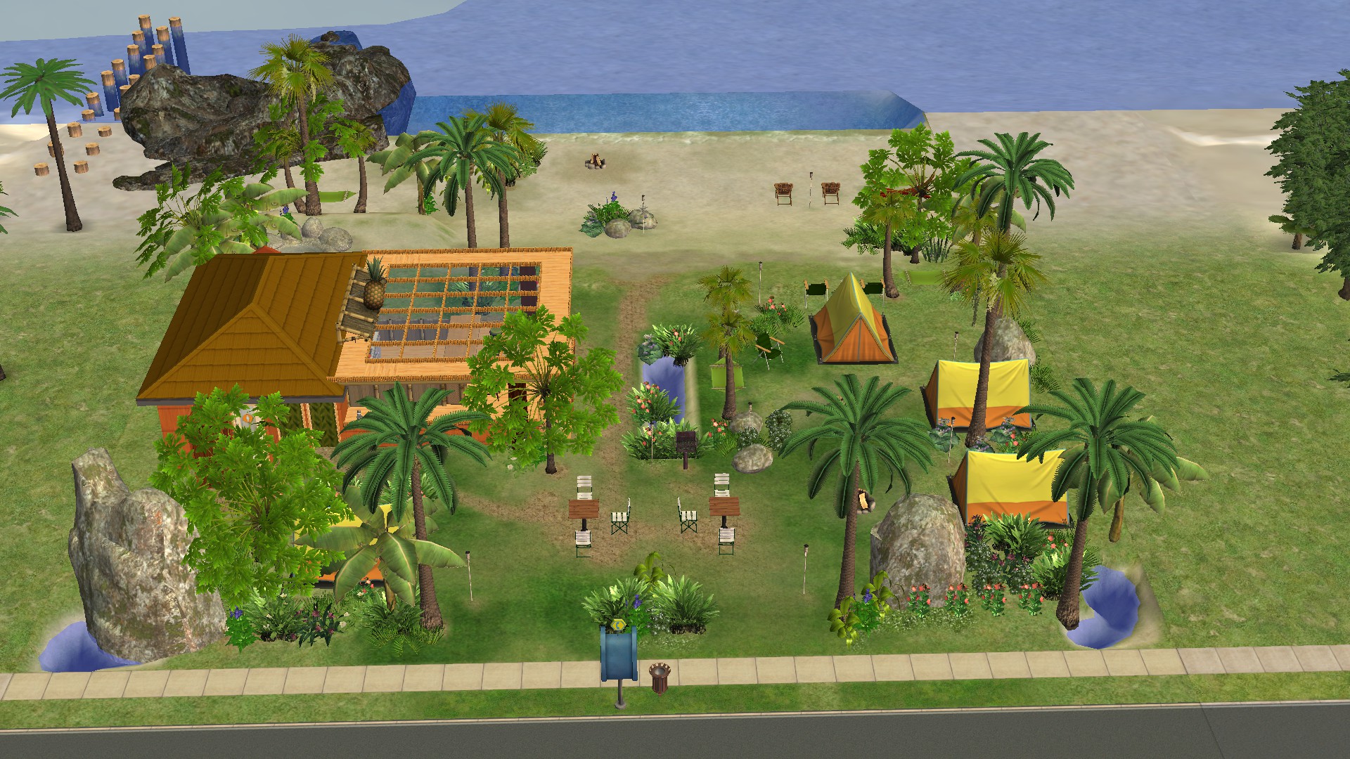 Sandy Beaches is ideal for your college sims looking to catch a (Spring) break from studying or nature enthusiast sims that want to get up close and personal with the sea, and all the nature the tropics provide. The Camping atmosphere will also unlock 'sleeping under the stars' as a vacation memento you otherwise wouldn't get with existing Twikii lodgings.