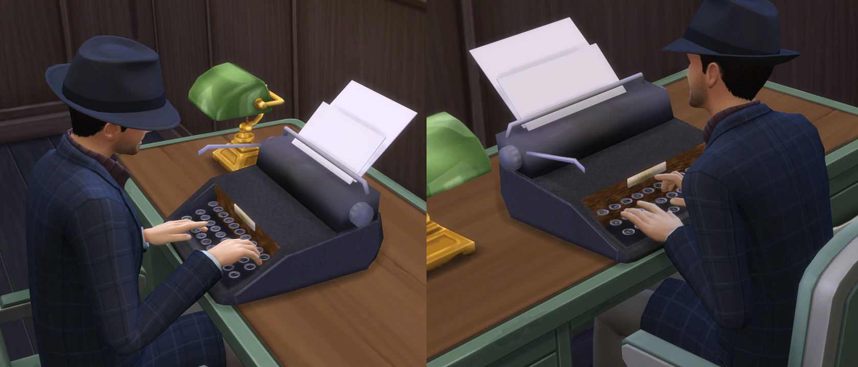 A note regarding desks: As TS4 comes with desks of very differing shapes and sizes, this object may not sit well on some of them, such as overhanging in front or clipping into shelves in back. So it's best to stick to the most standard sized and shaped desks.