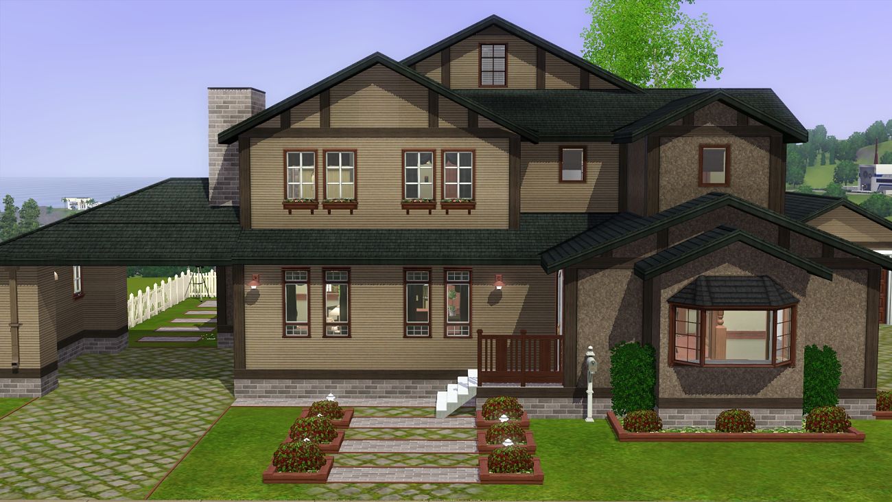This large home has three bedrooms and two and a half bathrooms. A detailed Craftsman-style house, this place has all the space a growing family needs! Mostly base game items, but a few curtains from Ambitions were used to complete the look. Also, ONE decorative item was used from Ambitions on the ground level. Other than that is is base game only. NO CC
