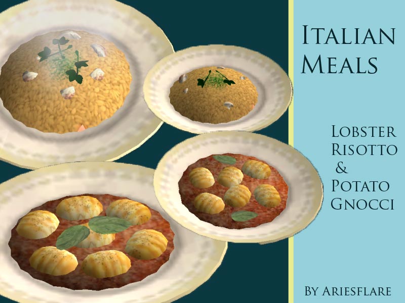 Both of these dishes are traditional meals from Italy. These meals should be easy for your sims to make and are spawned from spaghetti. Today, you will get the opportunity to add “Lobster Risotto” and “Potato Gnocci”. These meals are served both lunch and dinner! You will find these meals in a tab listed as “AF requests”. This tab is where I will place requested foods from members of MTS. Enjoy!