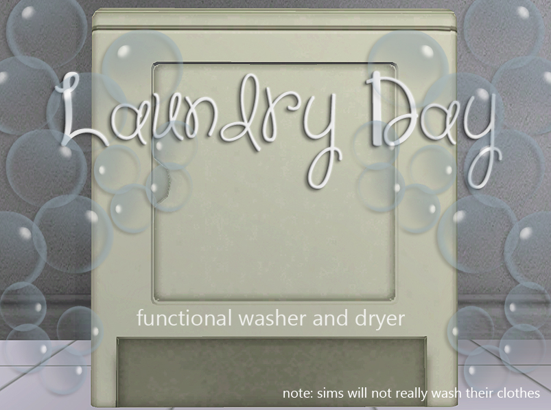 While Rebecah did the original coding, it was iCad's edited versions that I cloned to make mine since her edits were what I wanted in my objects. I further edited the BHAVs, adding a few more animations, a coin flip here, a coin flip there.. so your sims won't do the exact same thing all the time. Depending on the coin flip, your sims just might have a bad experience with a "broken" washer or dryer and feel the need to take it out on the poor washer or dryer.