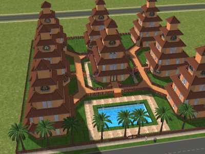 This creation is not furnished there's just floor, walls, stairs, doors, windows and a swimming pool...