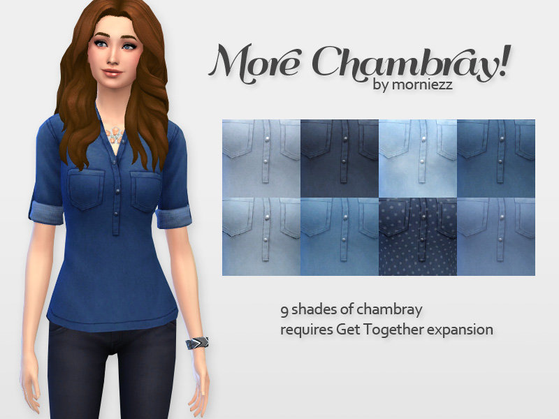 Included are 9 recolours of the blue chambray shirt from Get Together, in such colours as bleached, dark, acid wash, distressed, and polkadot.