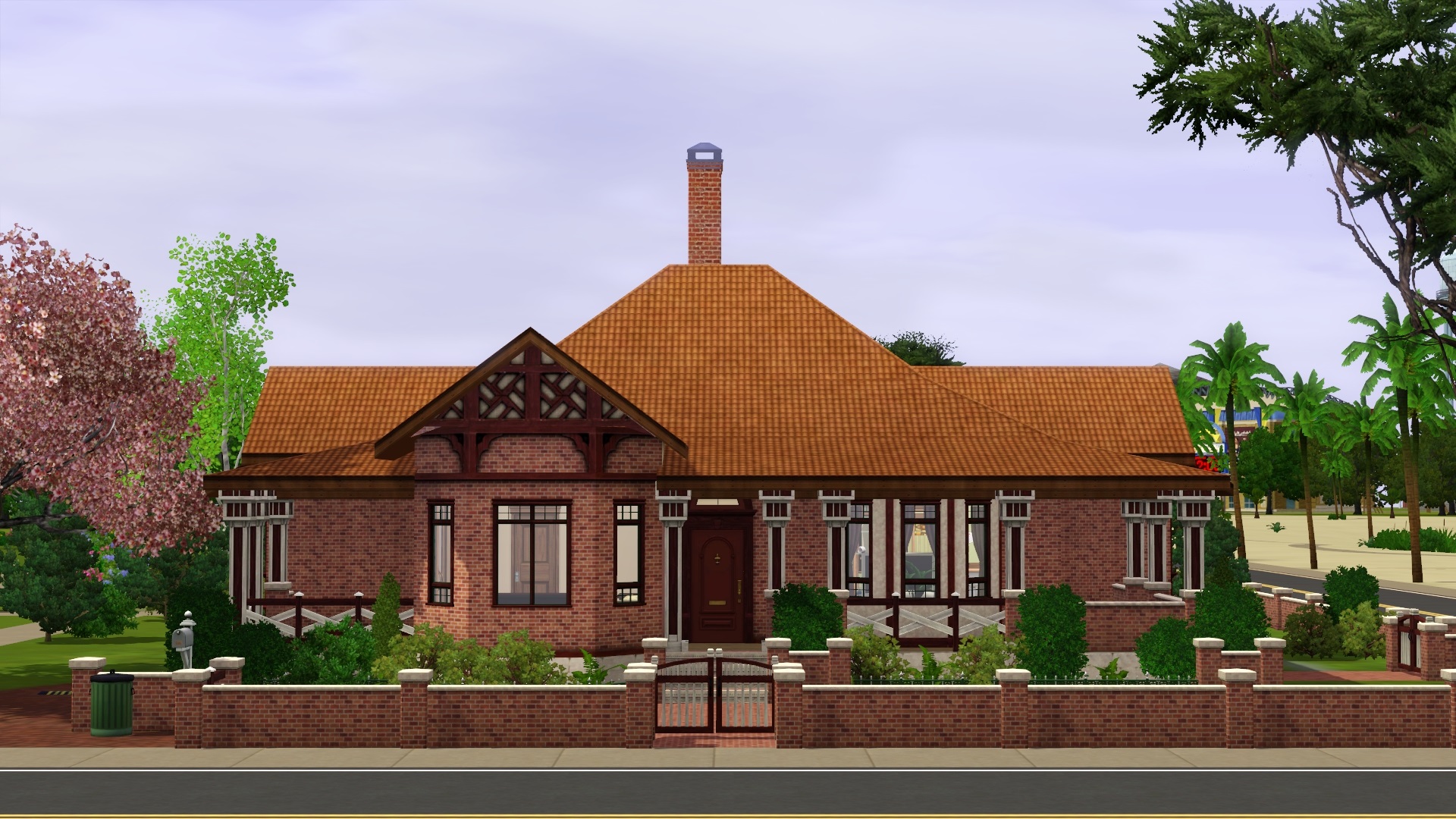 Its sprawling floorplan (which is not modelled after any real floorplan), features three bedrooms, one bathrooms and an open living room/kitchen/dining area. The house costs 48,600 unfurnished and 65,700 furnished. The house sits on a 30x30 lot, so there's plenty of garden space and room to expand the house. The house was made on a corner lot, although you'll be fine putting it on a regular lot.