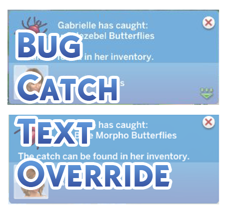When a Sim is successful in catching an insect, a notification displays to the player what was caught and how many. The text will always refer to the catch in the singular term though. So if you find 3 of something, "it" can be found in the inventory. This really irritated me so I looked at a way to "fix" it.