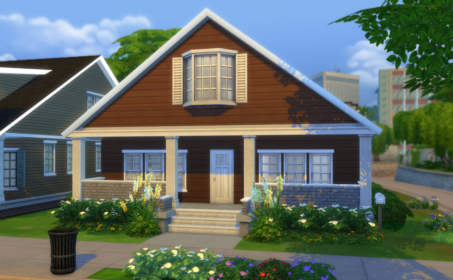 a small, family-friendly bungalow style starter suitable for burgeoning legacy families or randos with kids. comes with an unfinished attic that can easily be converted into two kid rooms, and the unfinished basement is big enough for another double-bed bedroom or skilling shenanigans. expansion is otherwise a bit more difficult, but doable. adding a cross gable on the central mass at a good pitch can result in a 5-square space in the attic for more sleeping space, or you can always choose to dig further into terrible subterranean realms.
