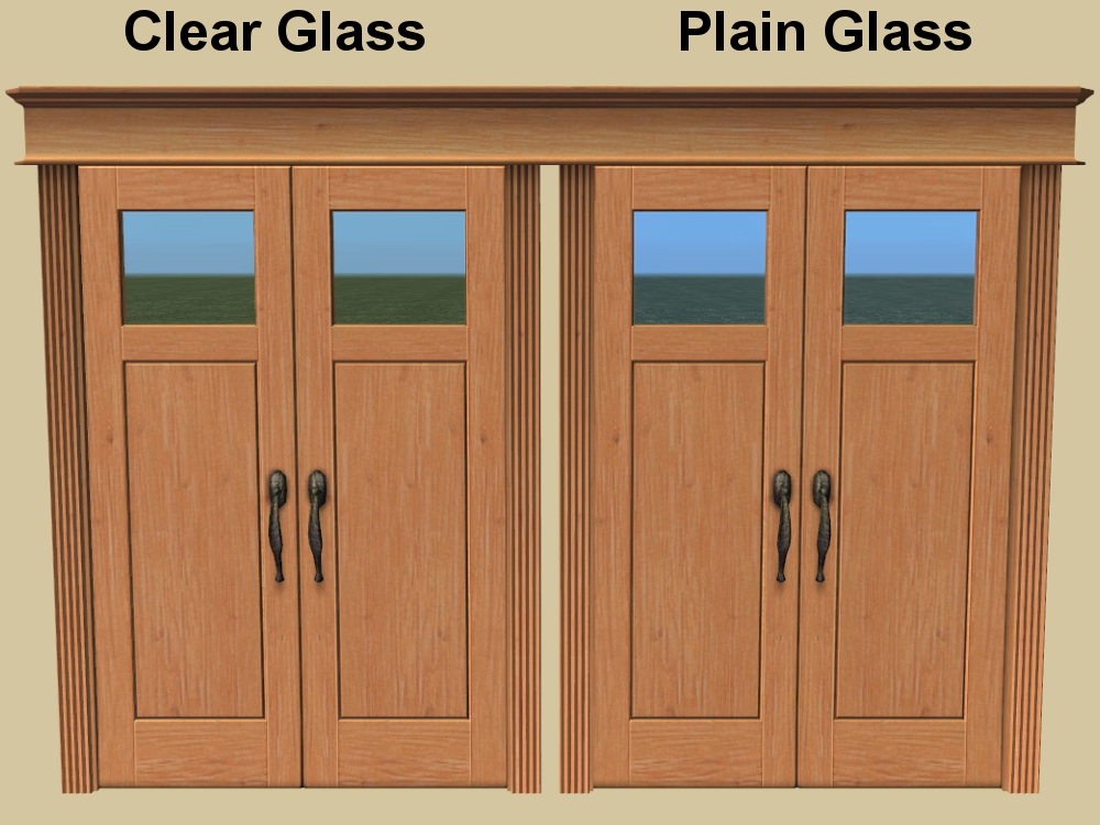 I recently uploaded the VIP Deluxe Double Doors Recolours and included 20 GLASS inserts, Monday2 asked in the comments about "doors without lines on the glass so it is just clear glass". After thinking about it I decided to do some glass recolours. I made 1 to match the VIP Deluxe Double Doors original glass insert, 1 to match my glass inserts and 6 to match the glass in some of the Maxis Base Game windows.