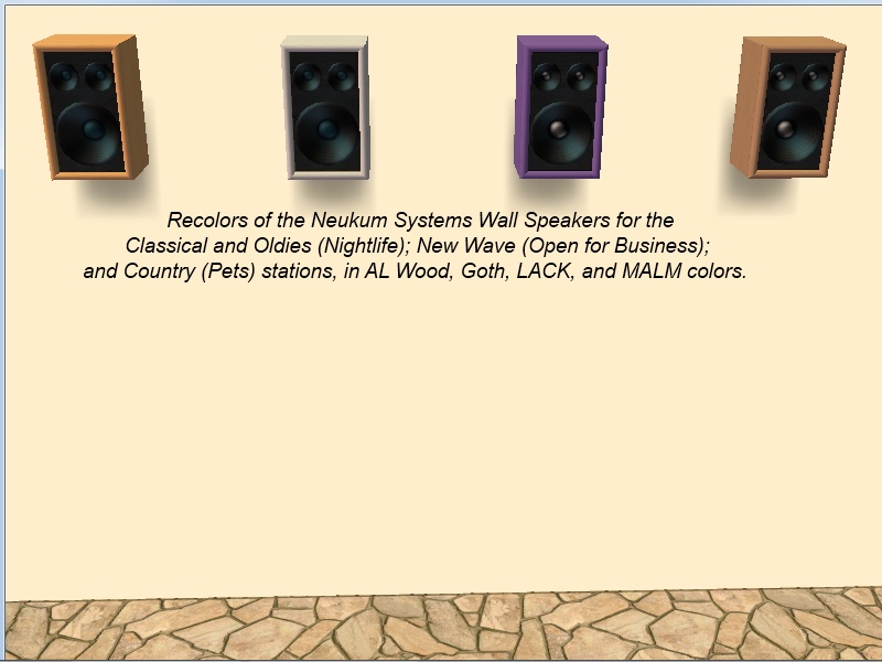 Recolors for more of the community lot Neukum wall speakers