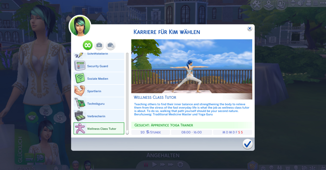 Sims start out as wellness class tutor and have the chance to specialise as traditional medicine master or yoga guru. I've dared to immodestly mix traditions, cultures and disciplines, "simmified" some of them and added a pinch of "new age vibe" to make this career fun to play along with. The Traditional Medicine Master branch is a bit more challenging, due to the use of the herbalism skill.