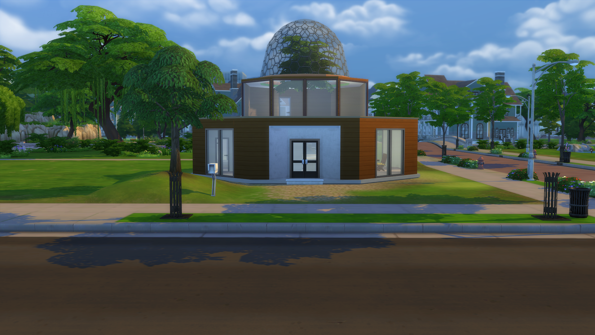 I listened to a podcast on solarpunk recently, and have been fascinated by the architectural concepts associated with the movement since! Solarpunk encourages optimistic envisionings of the future in light of climate change, and there's some amazing concept art out there. So I wanted to design something that was aesthetically pleasing, not outside the realm of possibility, and which was built around nature, not the other way around. I'd like to design more houses like this!