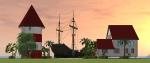| Nautical museum, pirate ship, and restaurant on the beach