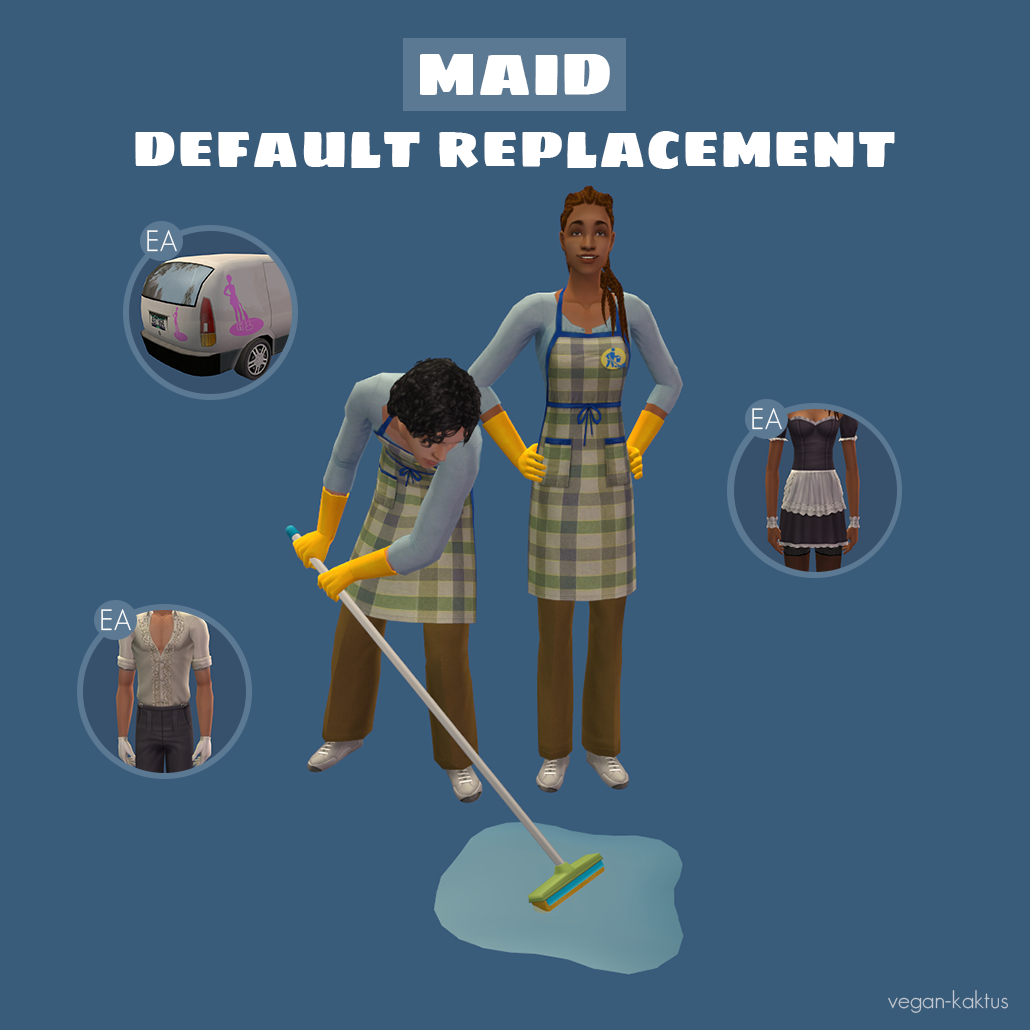 My default will not conflict with whattheskell‘s maid completer / male maid separates since rudhira was kind and threw together my default file the “right” way! Also worth mentioning, EA originally had three different colors for the male maid but my default does not.