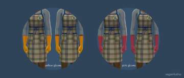 I got rid of the shorts on EA’s Kitchen&Bath pre-order outfit, extracted the pants from afbodydeliveryperson / ambodydeliveryperson and colored them brown. I also made the gloves yellow, but there is a version included with pink gloves as well (choose only one file!). My default contains two 1024x1024 textures, and both AF and AM share those textures. The shoes are my fixed umbottomwillpants shoes from my pizza default.