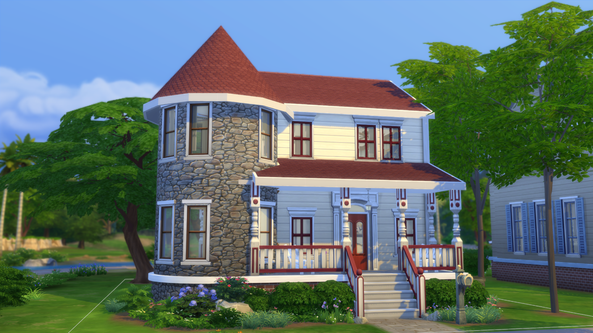 Please Note: This home leverages the new curved walls feature from game version 1.90.358.1030. While the curved walls could loosely be described as "functional", they also come with some really frustrating visual glitches and limitations. I've opted to share this lot in spite of them, but ceilings and floors currently look very odd in the tower section of this lot and there's a rather nasty visual glitch on the front of the house that I was able to mostly hide with the landscaping. I also strongly recommend placing the lot with the bb.moveobjects cheat enabled, as I had to make heavy use of it in order to get items in the tower to go where they were supposed to.