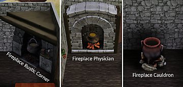 This download features two different Fireplaces that have been converted from the Sims 3 Medieval with modded functionality. These objects function as both Fireplaces and Stoves and use animations from TSM, so you will actually be able to watch your sims stir that cauldron. They use a custom recipe list that can be changed via Tuning (the default list only contains recipes that I thought would make sense to be cooked in a cauldron). I also included some new recipes that were inspired by TSM, though adding them is completely optional.