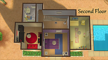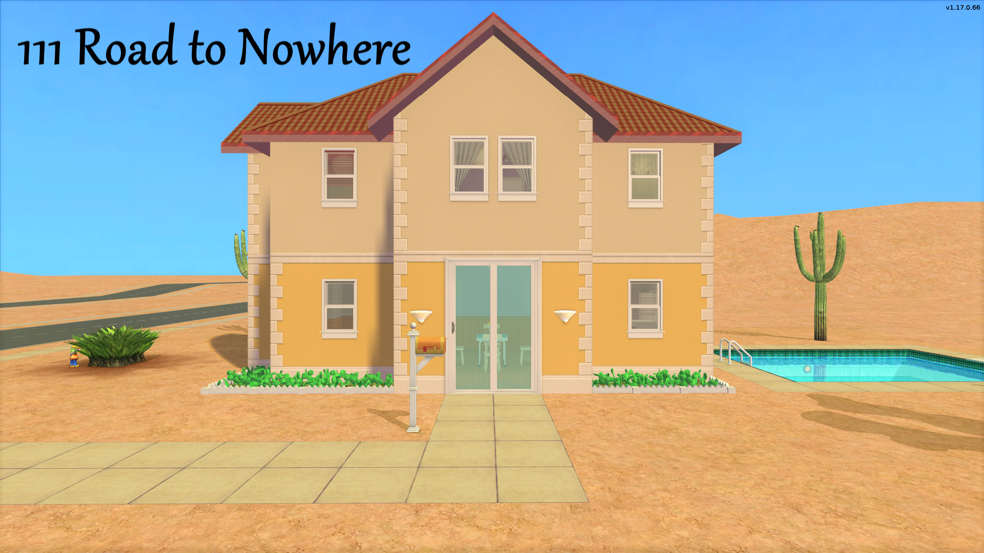 111 Road to Nowhere is a 3 bedroom, 2 bathroom house that's kitted out with all the furnishings your Sims will need to live a comfortable life! It costs §39,252 and includes a small garden space with a swimming pool. Perfect for those hot days in the blistering desert!