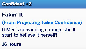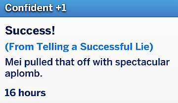 -Lie About Self (changes based on mood, chance for Confident moodlet)