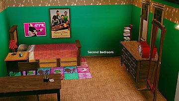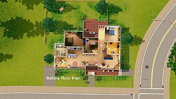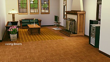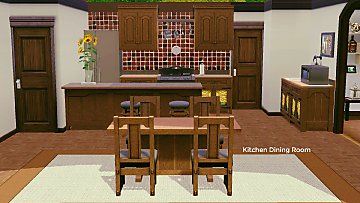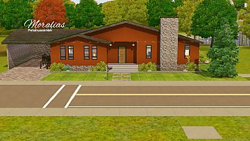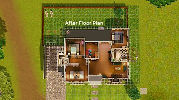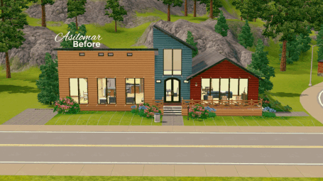 This lot is base game compatible, so no expansion packs were used. It’s a fully furnished house featuring three bedrooms, two bathrooms, a kitchen dining room, a living room with a fireplace, carport with two bike racks and a backyard with a small garden and ample space for children to play.