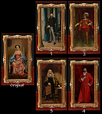 This is my fourth set of paintings; while I was searching for portraits of ladies, I found so many beautiful portraits of men that I had to make sets of them as well. The paintings are all public domain, I just edited them to fit the frame. The selection is based on what could fit properly, what I could find - and what I liked!