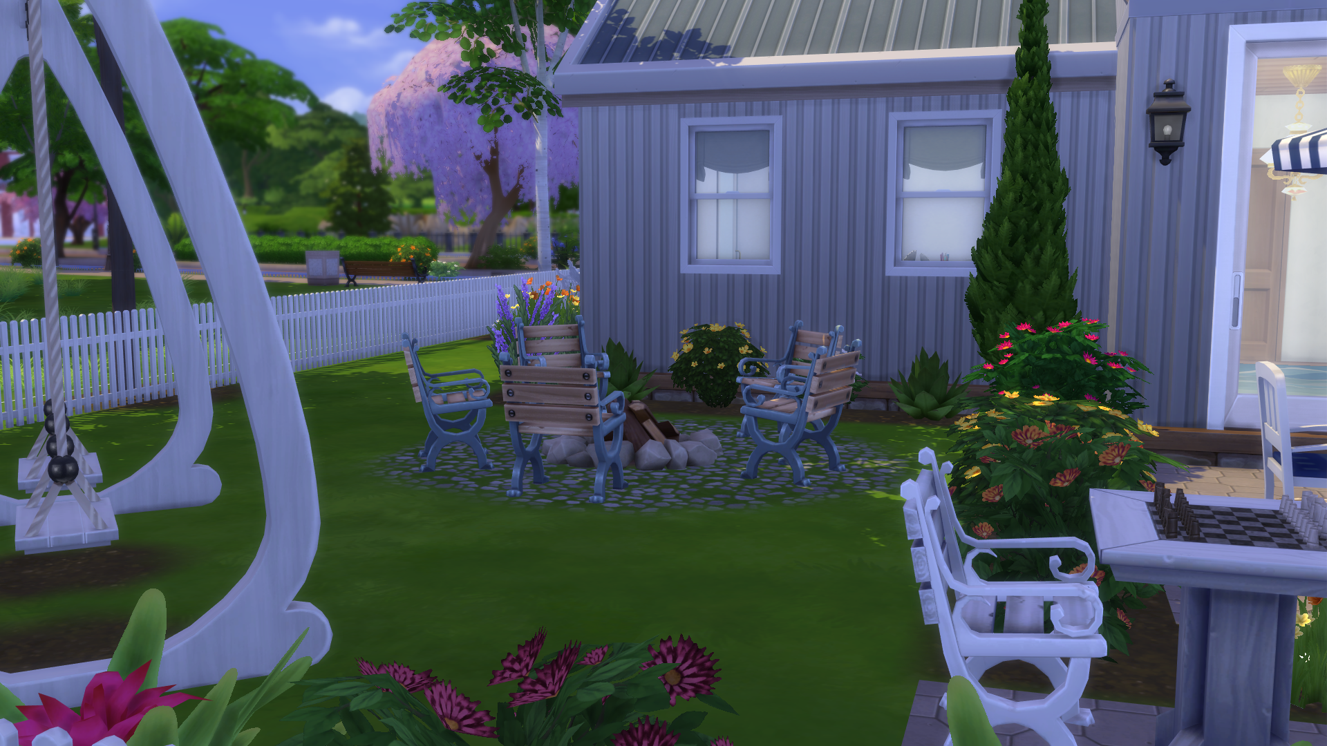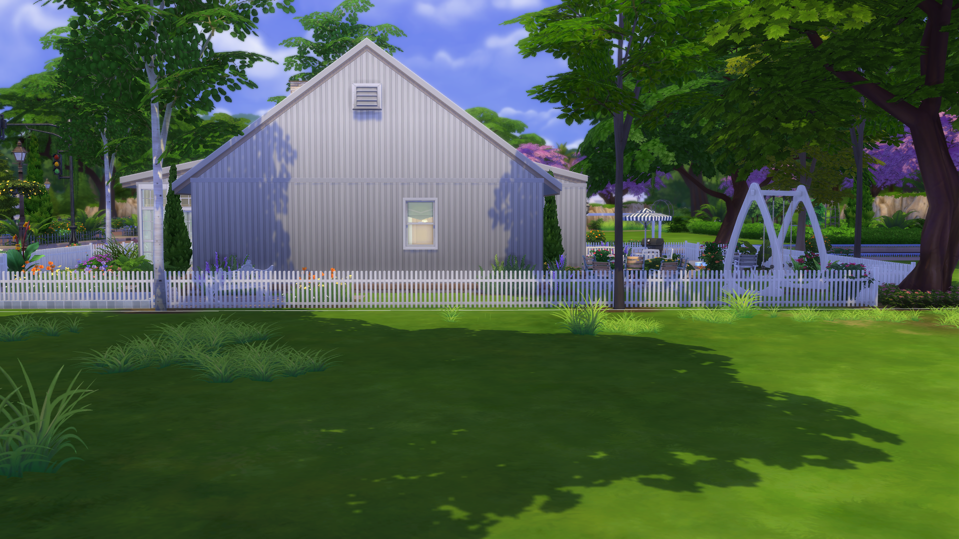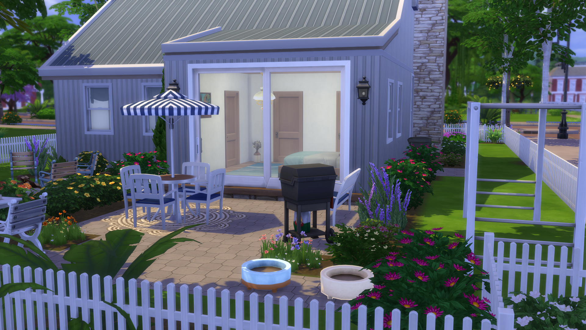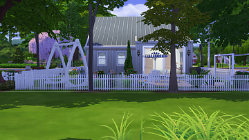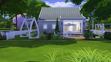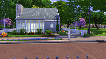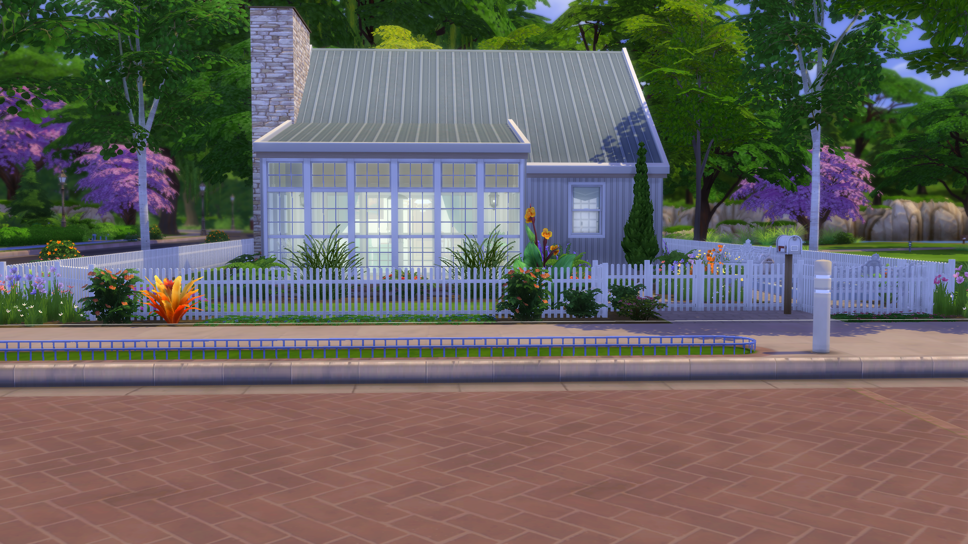 A small 2 bedroom 1 bath cottage with plants trees and a fountain. The entry is an old fashioned sun room. There is a small patio with a dining, sitting and barbeque area. The bath is a Jack and Jill. The back yard has a swing and monkey bars for the munchkins. I used Businesses and Hobbies EP's, Greenhouse haven and Courtyard Oasis Kits in the build. Enjoy.