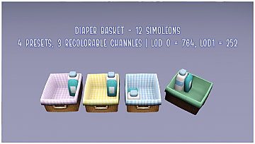 • Stock: Only used on diaper baskets. This will fill up the basket with 22 diapers, your sim needs to have either diapers or a diaper pack in their inventory in order for the interaction to show up.