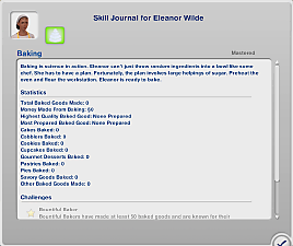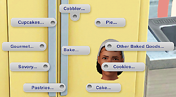 Baking is a 10 level skill, and is primarily gained by sims making baked goods under the new “Bake…” pie menu option on refrigerators, or from reading baking skill books found at the bookstore.
