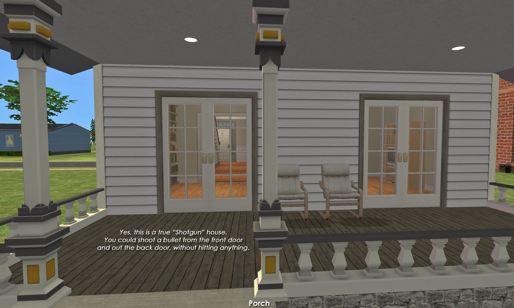 I intentionally keep my builds lightly furnished - with only EAxis stuffeths - so that you can have all the fun of decorating it! (Please CC-it-up once you get it in your game!) All appliances, plumbing and lighting are included; along with smoke and burglar alarms, and telephones.