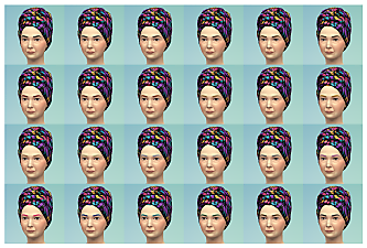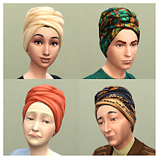 This file overrides the CASP and texture resources for all of the headwraps, as shown in the attached screenshots, and adds additional hair colour overlays for the game to pair with them to accurately display the correct hair colours.
