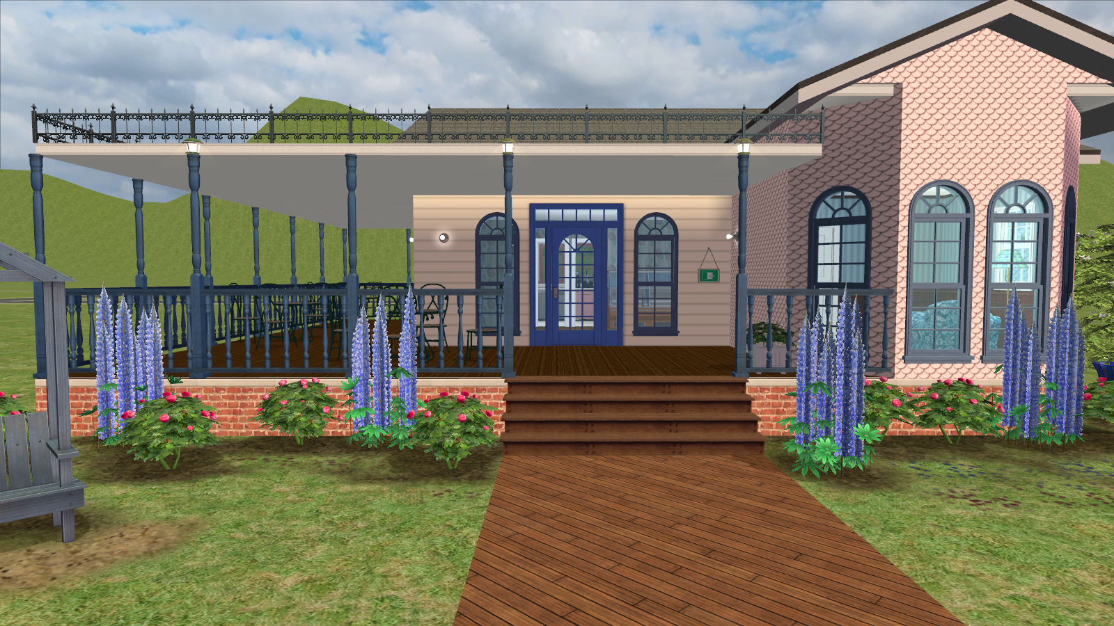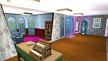 (A copy of this lot is used in my game. It belongs to Lorraine Appleby, who runs it with the help of her twin children (now adults), Lorimer and Lara. It is one of the most successful businesses in my game and the tables are mainly used over weekends, when the kids tag along and the family eats cake after the business is closed for the day).
