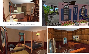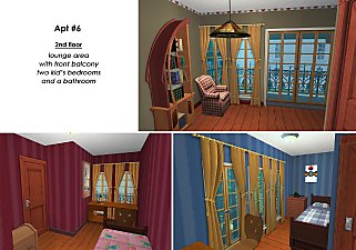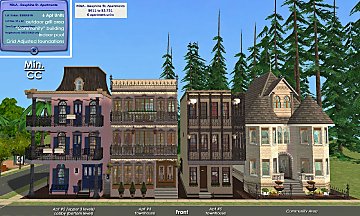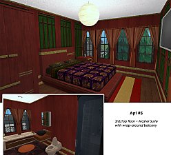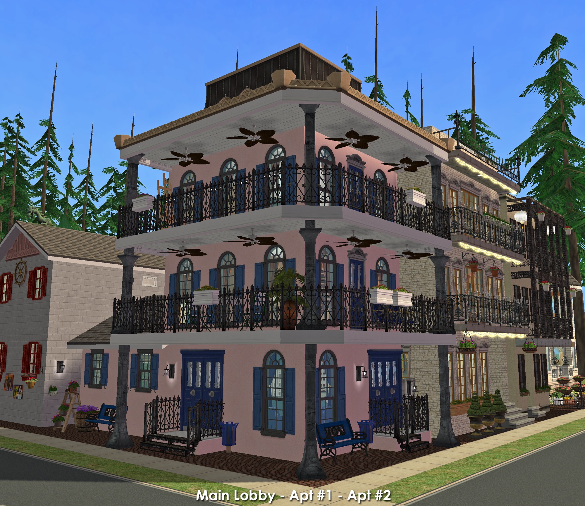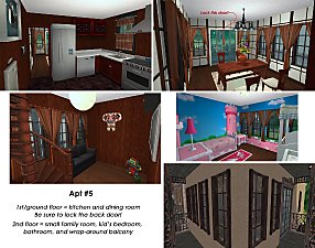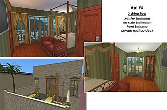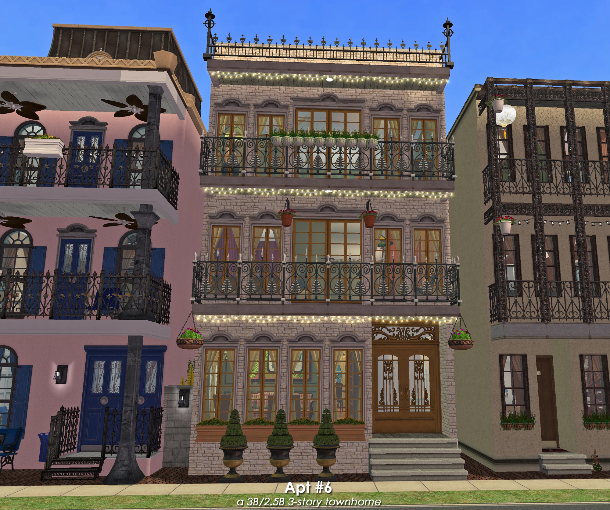 Apt 6 - $3,731 - is a 3B/2.5B townhome w/3-stories, front balconies, and a private deck off the Master Bedroom. ( for the "old money," fancy sim. Maybe a single parent with two kids?)