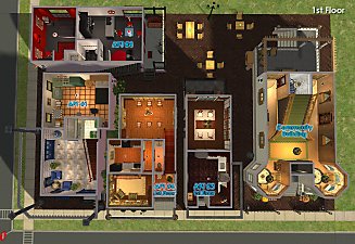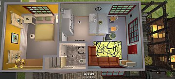 I intentionally keep my builds lightly furnished - with only EAxis stuffeths - so that you can have all the fun of decorating it! (Please CC-it-up once you get it in your game!) All appliances, plumbing and lighting are included; along with smoke and burglar alarms, and telephones.