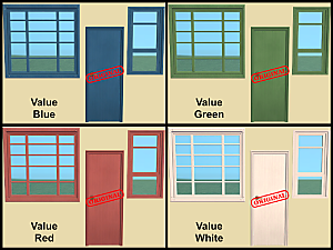 Recolors of Sheer Glass Window, High Tech Loft Window and Oaktowne Classic Door matching each other